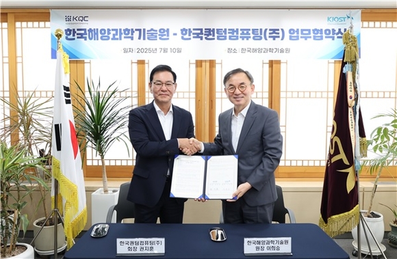 한국해양과학기술원(KIOST)이 한국퀀텀컴퓨팅(KQC)와 공동으로 10일 KIOST 부산 본원에서 해양연구 분야에 양자컴퓨팅 기술을 접목해 과학기술·디지털 기반의 성장 동력을 강화하는데 기여하고자 업무협약을 체결했다고 밝혔다.