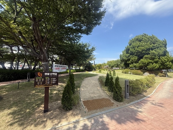 울산시설공단은 동천체육관 유휴 녹지 공간을 활용해 시민과 방문객이 자연 속에서 맨발로 걸으며 힐링할 수 있는 맨발 산책로(어싱길)를 새롭게 마련했다고 밝혔다.
