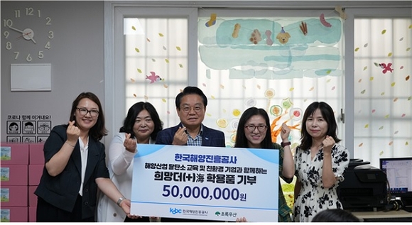한국해양진흥공사가 지난 15일 부산시 동래튼튼이아동지원센터에서 지역 아동의 친환경 인식 개선과 자원 순환 문화 확산을 위한 '친환경 학용품 전달식'을 가졌다고 밝혔다.