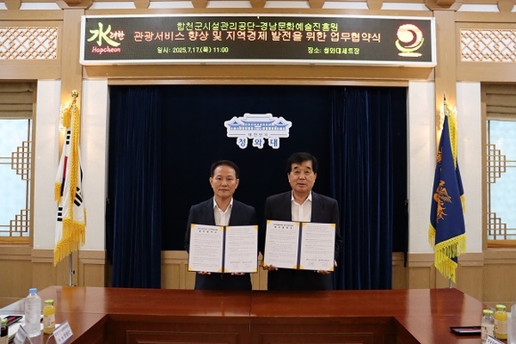 경남문화예술진흥원은 합천군시설관리공단과 17일 합천영상테마파크에서 경남 영화·영상 산업 발전 도모를 위한 업무협약을 체결했다고 밝혔다.