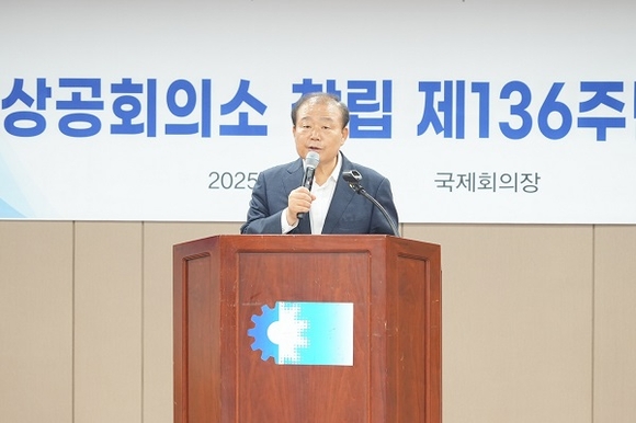 부산상공회의소가 18일 부산상의 2층 국제회의장에서 임직원 70여 명이 참석한 가운데 창립 136주년 기념식을 열었다.