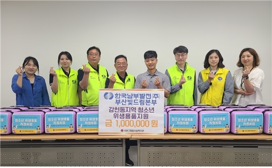 한국남부발전 부산빛드림본부 나눔빛 봉사단이 지난 17일, 지역 종합사회복지관과 협업해 발전소 인근 지역 취약계층 여성 청소년들에게 200만원 상당의 위생용품 및 파우치 세트를 지원했다.