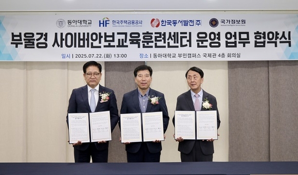한국동서발전은 22일 오후 부산 동아대학교 부민캠퍼스에서 ‘부울경 사이버안보교육훈련센터’ 설립·운영을 위한 업무협약을 체결했다고 밝혔다.