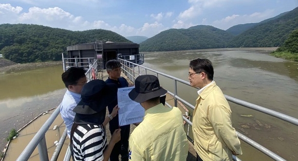 서흥원 낙동강유역환경청장이 23일 사연댐을 방문해 최근 집중호우로 인해 사연댐에 흘러든 부유쓰레기를 신속하게 수거하고 처리해 달라고 당부했다.