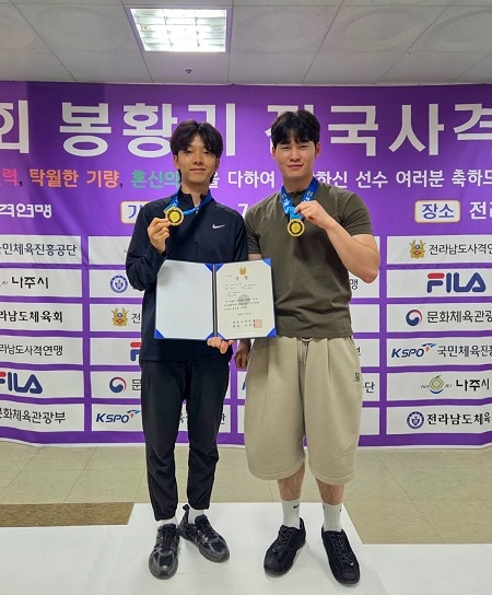 우선 개인전에서 이현서(체육교육과 1) 선수가 공기소총 1위, 소총3자세 3위, 김동빈(스포츠과학부 1) 선수가 공기권총 1위, 50m권총 1위를 차지하며 금메달 3개, 동메달 1개를 각각 획득했다.