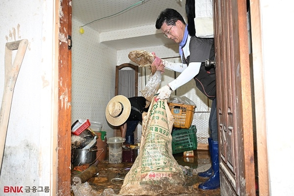 BNK금융그룹이 기록적 폭우로 큰 피해를 입은 경남 합천·산청·의령 지역을 찾아 추가 구호활동과 성금 전달에 나섰다. 지난 25일 빈대인 회장을 비롯해 방성빈 부산은행장, 김태한 경남은행장 등 주요 경영진과 임직원으로 구성된 'BNK 긴급재난 봉사대'는 세 지역을 순차 방문하며 실질적 복구 지원에 구슬땀을 흘렸다.
