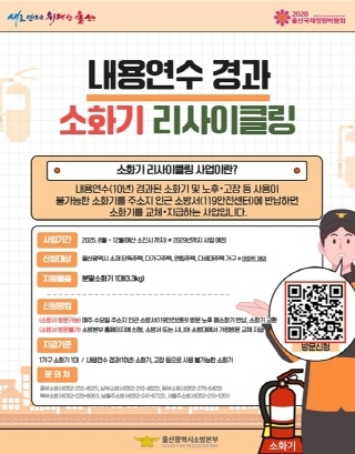 울산소방본부가 10년 이상 된 노후 소화기를 새 소화기로 무상 교체해주는 사업을 추진 중이다.