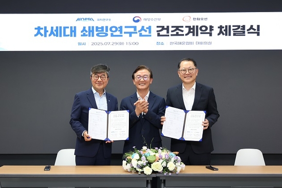 해양수산부 극지연구소와 한화오션은 29일 오후 서울 영등포구에 위치한 한국해운협회 대회의실에서 차세대 쇄빙연구선 건조 계약을 체결했다고 밝혔다. 차세대 쇄빙연구선은 쇄빙능력시험을 포함해 2029년 12월까지 건조를 완료하고 이후 우리나라 극지 연구 임무를 맡게 된다.