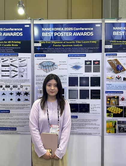 국립창원대학교 기계공학부 스마트제조융합전공은 조영태 교수 연구실의 윤서나 학생의 논문이 'NANO KOREA 2025'에서 ‘Best Poster Award’를 수상해 주목받고 있다고 31일 밝혔다.