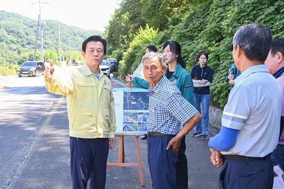 이날 조규일 시장이 찾은 곳은 명석면의 ▲내율마을 진입도로 ▲오미1교 ▲남성저수지 인근 시도 17호선 등으로 집중호우로 인한 도로 유실 및 교량 피해가 큰 현장이다.