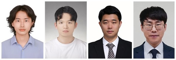 (왼쪽부터)김웅식 학석사통합과정생(제1저자), 배지호 석사과정생, 최상민 교수, 이수원 교수(교신저자).(사진=경상국립대 제공)