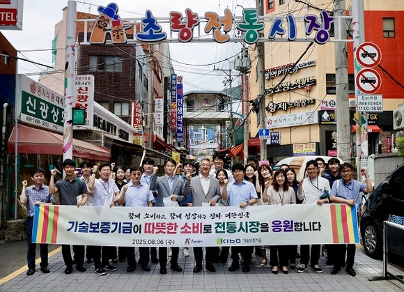 기술보증기금이 지역경제 활력 제고와 민생회복을 위해 부산 동구 초량전통시장을 방문해 전통시장 소비촉진 캠페인과 현장 간담회를 진행했다고 6일 밝혔다.