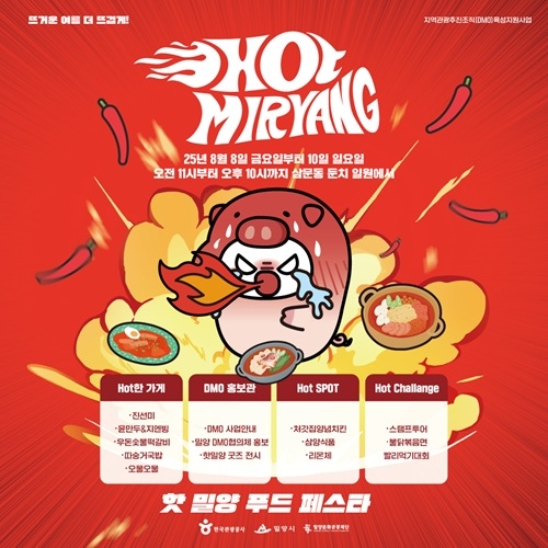 밀양문화관광재단은 지역관광추진조직(DMO) 육성지원사업의 하나로 오는 8일부터 10일까지 삼문동 밀양강변 일원에서 '핫 밀양 푸드 페스타'를 연다고 6일 밝혔다.