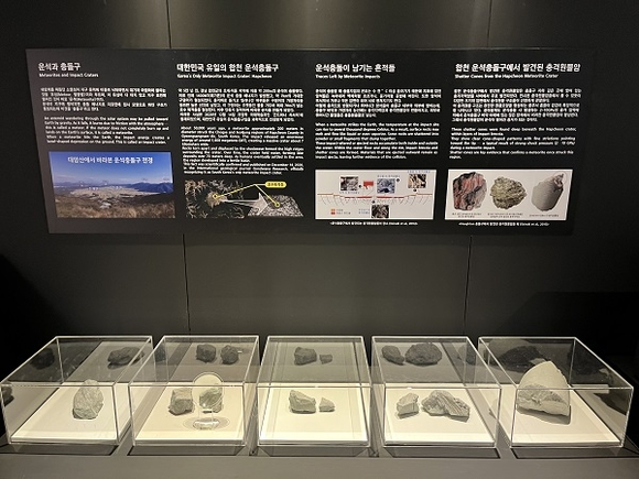 특히 합천운석충돌구 충격원뿔암은 2부 '보이지 않는 세계' 코너에 전시되며, 합천운석충돌구의 생성과정과 지질학적 흔적에 대한 설명도 함께 제공된다.