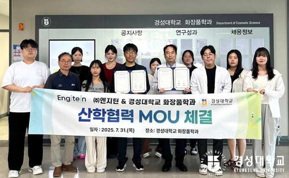 경성대학교 화장품학과는 지난달 31일 ㈜엔지틴과 산학협력 업무협약(MOU)을 체결하고, 천연물 기반 기능성 화장품 소재 및 제형 개발을 위한 공동 연구를 본격 추진하기로 했다고 8일 밝혔다.