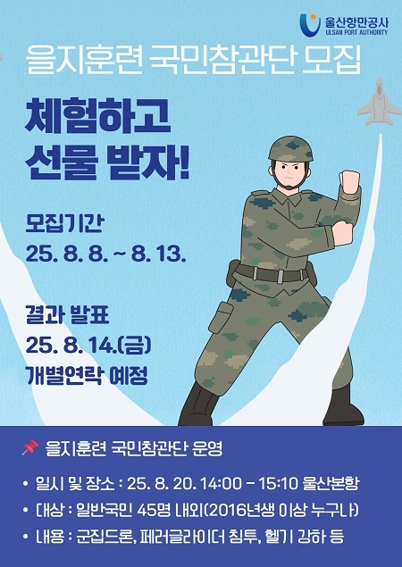 울산항만공사는 국민이 참여하는 ‘2025년 을지연습’을 위해 국민참관단을 운영한다고 11일 밝혔다.