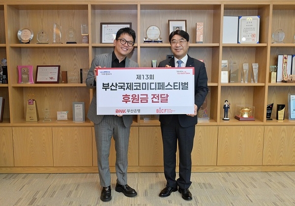 BNK부산은행이 11일, 부산은행 본점에서 ‘제13회 부산국제코미디페스티벌’의 성공적 개최를 위해 후원금 5000만 원을 부산국제코미디페스티벌 조직위원회에 전달했다고 밝혔다.