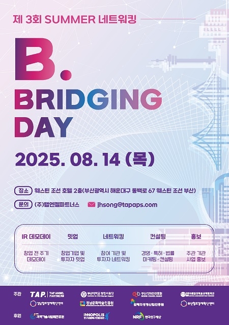 부산연구개발특구본부가 오는 14일 웨스틴조선 부산에서 'B.Bridging Day, 제3회 SUMMER 네트워킹'에 참여해 해양분야를 중심으로 한 딥테크 혁신기업의 투자유치와 사업화 지원에 나선다고 밝혔다.