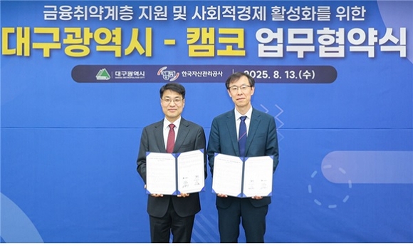 한국자산관리공사(캠코)가 13일 대구시와 '취약계층 지원 및 사회적 경제 활성화를 위한 업무협약'을 체결했다고 밝혔다.