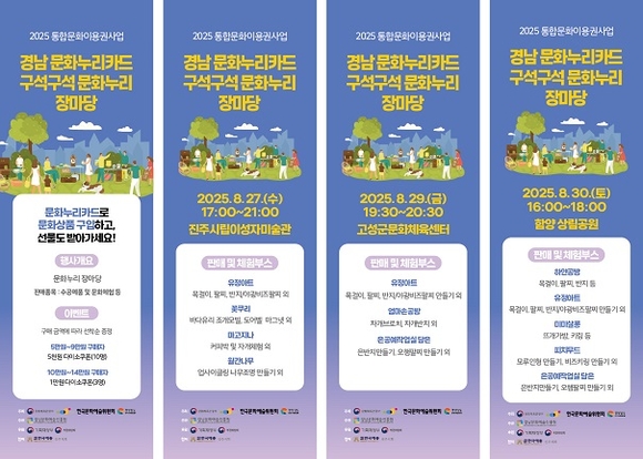 경남도와 경남문화예술진흥원은 문화누리카드 이용 활성화를 위해 ‘구석구석 문화누리 장마당’을 운영한다고 22일 밝혔다.
