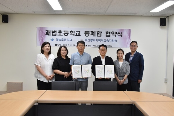 부산시북부교육지원청이 지난 21일 괘법초등학교에서 ‘통폐합을 위한 협약’을 체결했다고 밝혔다. 협약식에는 괘법초 교장과 학교운영위원장, 학부모회장, 시교육청 및 교육지원청 관계자 등이 참석했다.