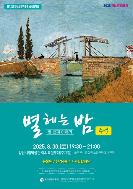 양산시립박물관이 오는 30일 오후 7시 30분부터 박물관 야외주차장 특설무대에서 숲속음악회 <별 헤는 밤, 열 번째 이야기 '추억'>을 개최한다.