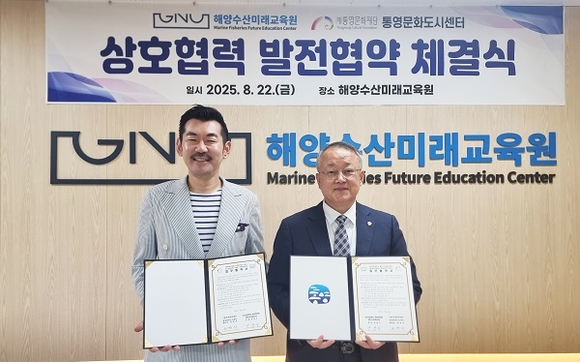 경상국립대학교 해양과학대학 해양수산미래교육원과 (재)통영문화재단 통영문화도시센터는 지난 22일 해양수산미래교육원에서 해양수산 미래 인재 양성과 지역문화 발전을 위해 업무협약(MOU)을 체결했다고 25일 밝혔다.
