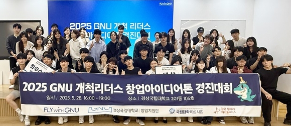 '2025 GNU 개척리더스 창업아이디어톤 경진대회' 참여팀들이 기념촬영을 하고 있다.(사진=경상국립대 제공)