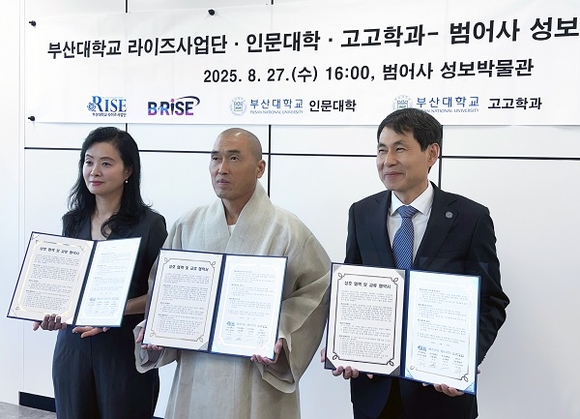 부산대는 교내 라이즈사업단과 인문대학, 고고학과가 공동으로 불교문화유산 전문 박물관인 범어사 성보박물관과 지난 27일 오후 성보박물관 관장실에서 상호 협력 및 교류를 위한 업무협약(MoU)을 체결했다고 28일 밝혔다.
