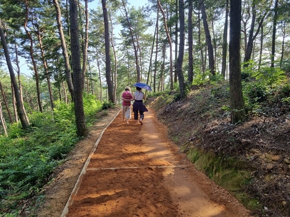 경남 진주시는 진양호의 숲과 호수가 지닌 치유 에너지를 극대화하기 위해 기존의 우약정 산책길을 '맨발걷기(어싱, Earthing)' 공간으로 재탄생시켜 300m에 달하는 걷기 좋은 '진양호 맨발길'을 조성했다고 28일 밝혔다.