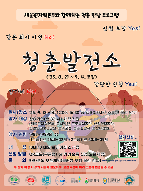 청춘발전소는 새울본부와 울주군이 함께 진행한 남녀 만남 프로그램으로 작년에 처음 시행했으며, 올해 진행될 ‘청춘발전소 시즌2’는 새울본부를 포함한 울산 소재 8개 기관인 울주군청, 울주경찰서, 동서발전, 근로복지공단, 산업인력공단, 산업안전보건공단, 울산대병원이 참여한다.