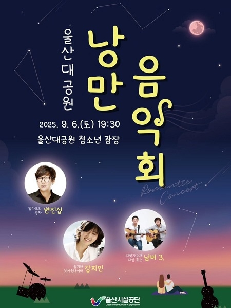 울산시설공단은 내달 6일 오후 7시 30분부터 울산대공원 정문 청소년광장에서 '울산대공원 낭만 음악회'를 개최한다고 29일 밝혔다.