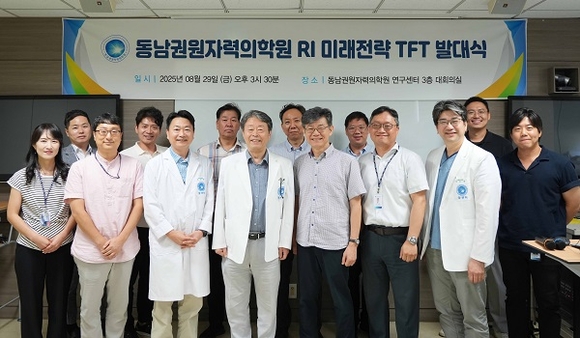 동남권원자력의학원은 지난달 29일 연구센터 3층 회의실에서 ‘RI 미래전략 TFT 발대식’을 열고, 차세대 방사성의약품 개발을 위한 협력 연구를 본격화했다고 2일 밝혔다.