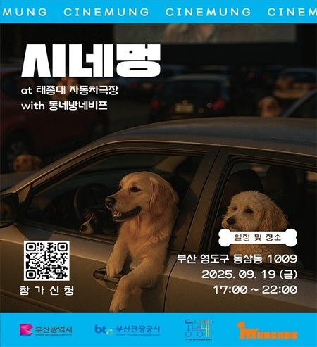부산관광공사가 오는 19일 태종대 자동차극장에서 반려동물과 함께 즐길 수 있는 특별 문화 행사 ‘시네멍 at 태종대 자동차극장 with 동네방네비프’를 개최한다고 3일 밝혔다.