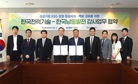 한국남동발전 감사실은 3일 경북 김천시 한국전력기술 본사에서 한국전력기술과 ‘공공기관 ESG 경영 점검체계, 역량강화를 위한 감사업무 협약’을 체결했다고 밝혔다.