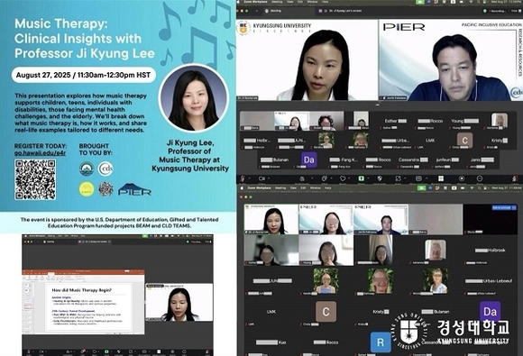 경성대학교 일반대학원 음악치료학과는 미(美) 연방정부교육부(U.S. Department of Education)가 후원하고 하와이대학교 마노아(University of Hawaiʻi, at Mānoa)가 주최한 초청 강연을 진행했다고 10일 밝혔다. 이 행사는 하와이 현지 시각으로 지난달 27일 오전에 열렸다.