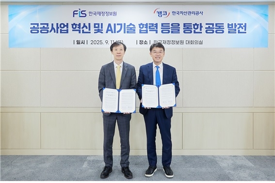 한국자산관리공사(캠코)가 11일 한국재정정보원 본사(서울 중구)에서 한국재정정보원과 '공공사업 혁신 및 AI 기술 협력 등을 통한 공동 발전 업무협약'을 체결했다고 밝혔다.
