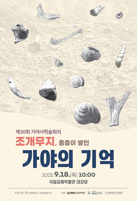인제대학교 가야문화연구소는 오는 18일 국립김해박물관 대강당에서 '제30회 가야사학술회의'를 개최한다고 12일 밝혔다. 올해 주제는 '조개무지, 층층이 쌓인 가야의 기억'이다.