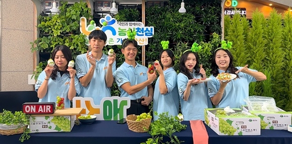 경남농협은 NH농협은행 대학생봉사단 N돌핀 13기 경남팀과 함께 지난 9일 지역 대표 특산물인 함안 샤인머스켓 온라인 라이브커머스 판매 및 홍보 행사를 진행했다고 12일 밝혔다.