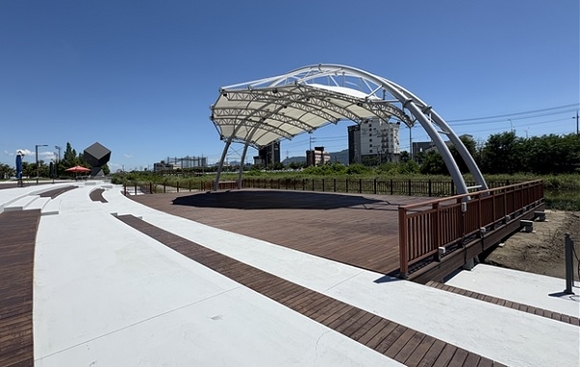 새롭게 조성된 야외무대는 울림공원의 광장 일부를 데크로 확장해 무대를 조성하고 기존 수변스탠드를 연장해 객석을 마련했다. 여기에, 공연은 물론 각종 문화 행사와 지역 축제의 장으로 활용할 수 있도록 조명과 음향시스템을 갖췄다.