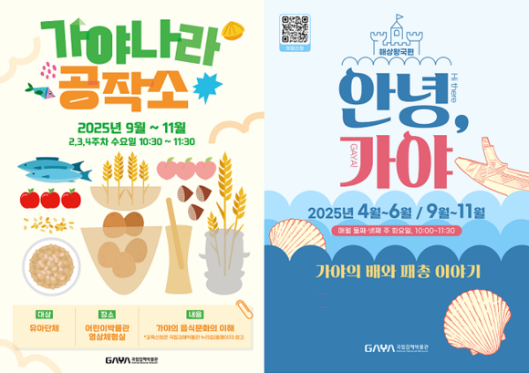 ‘가야나라 공작소’는 가야의 음식문화를 알 수 있는 교육프로그램으로 어린이들이 가야 사람들이 먹었던 음식과 생활을 팝업형 인형놀이를 통해 자연스럽게 학습할 수 있도록 마련됐다. 이 교육은 유아 단체를 대상으로 이달부터 11월까지 2·3·4주 수요일에 진행된다.