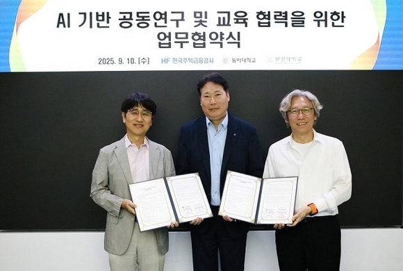 이번 협약을 통해 동아대와 한국주택금융공사, 부산대는 △인공지능(AI) 기반 공동 연구개발 과제 기획 및 수행 △대학생 현장 실무체험 및 상담 프로그램 운영 등 교육 협력 △최신 인공지능(AI) 트렌드 소개 및 기술 세미나를 통한 인공지능(AI) 역량 강화 △연구 개발을 위한 테스트베드 및 데이터 제공을 통한 실증 기반 마련 등 다양한 분야에서 협력할 계획이다.