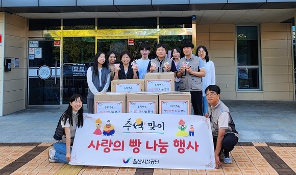 울산시설공단은 24일 추석 명절을 맞아 지역사회 따뜻한 온정을 전하고자 사랑의 빵 나눔 행사를 진행했다고 밝혔다.