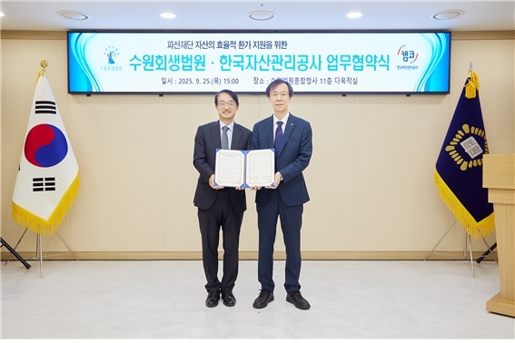 한국자산관리공사(캠코)가 수원회생법원과 25일 수원법원종합청사에서 '파산재단 자산의 효율적 환가 지원을 위한 업무협약'을 체결했다고 밝혔다.