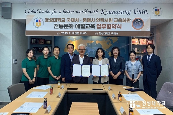 경성대학교 국제처는 지난 19일 경성대 건학기념관 국제처에서 충렬사 안락서원 교육회관과 외국인 유학생 대상인 전통문화 예절교육 업무협약을 체결했다고 26일 밝혔다.