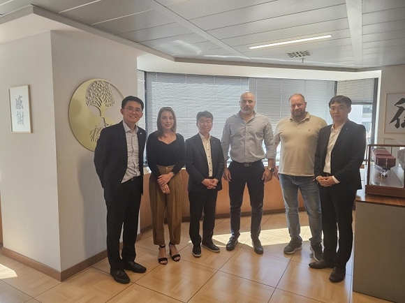 KR김연태 부사장(왼쪽 세 번째)과 KR 전문가들이 그리스 선사 Danaos Shipping 방문 후 기념촬영을 하고 있다.(사진=KR 제공)