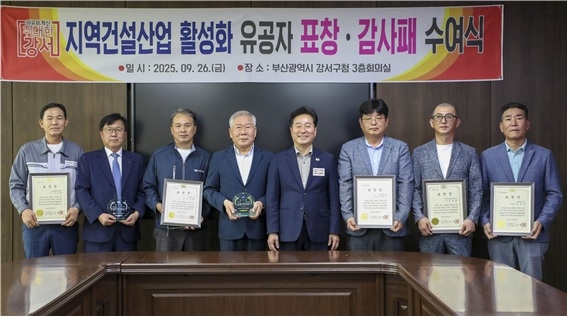 부산 강서구가 26일 강서구청 3층 구청장실에서 '지역건설산업 활성화 유공자 표창장 및 감사패 수여식'을 개최했다.