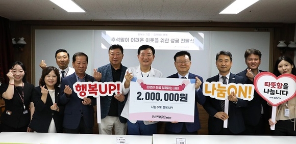 추석명절을 앞두고 연제구 관내 소외계층을 위해 이성림 부산시설공단 이사장(오른쪽 네번째)이 200만 원의 기부금을 전달하고 기념촬영을 하고 있다.(사진공단 제공)