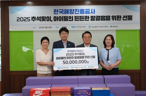 한국해양진흥공사가 지난 29일 부산 박애원에서 지역 20개 아동양육시설 원장 및 관계자가 참석한 가운데, 아동양육시설 아동을 대상으로 약 5천만 원 상당의 ‘맞춤 운동화’ 전달식을 가졌다고 밝혔다.