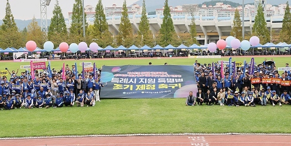경남 창원시는 30일 창원스포츠파크 보조경기장에서 열린 2025 바르게살기운동 창원시 회원 한마음다짐대회에서 약 980여 명이 참석한 가운데 '시민 공감 릴레이 캠페인'의 두 번째 퍼포먼스를 성황리에 진행했다.